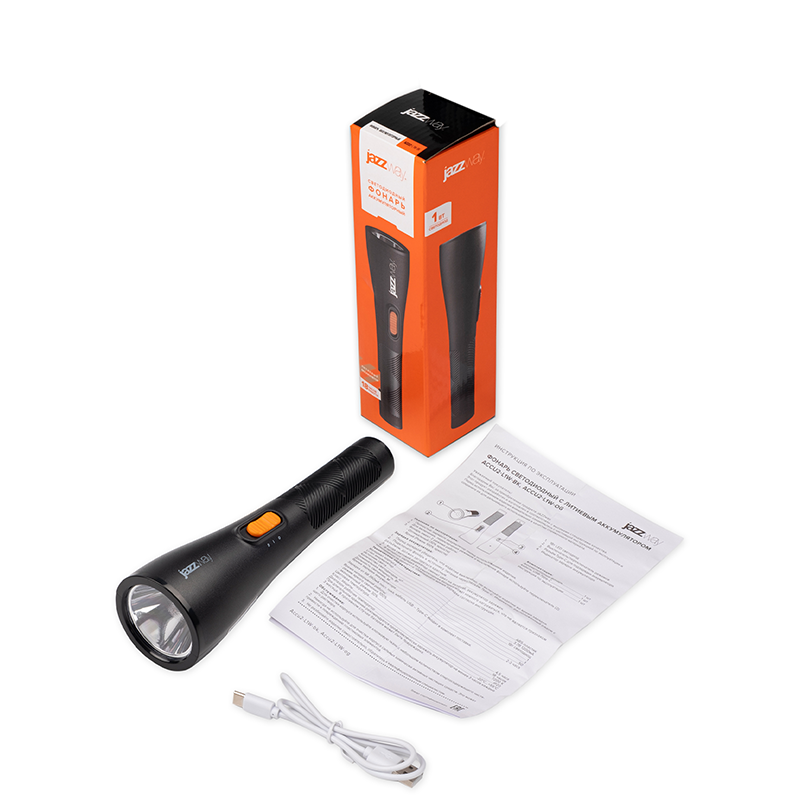 Встроенный литиевый аккумулятор заряжается от разъема USB 5В, необходимая сила тока – 0,35 А, кабель USB-Type-C длиной 0,5 м входит в комплект поставки. По окончании зарядки индикатор рядом с разъёмом меняет цвет на зелёный. Время непрерывной работы при полностью заряженном аккумуляторе в режиме яркого света - 4,5 часа, в экономичном режиме - 18 часов. Класс защиты IP20.