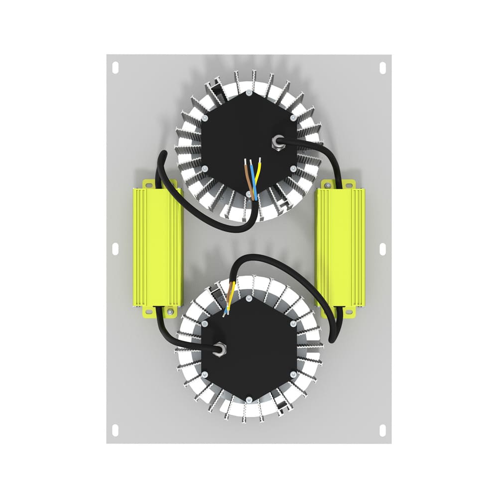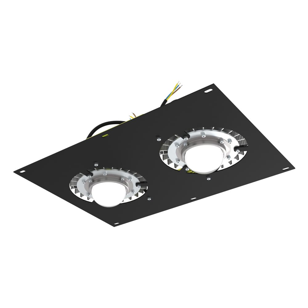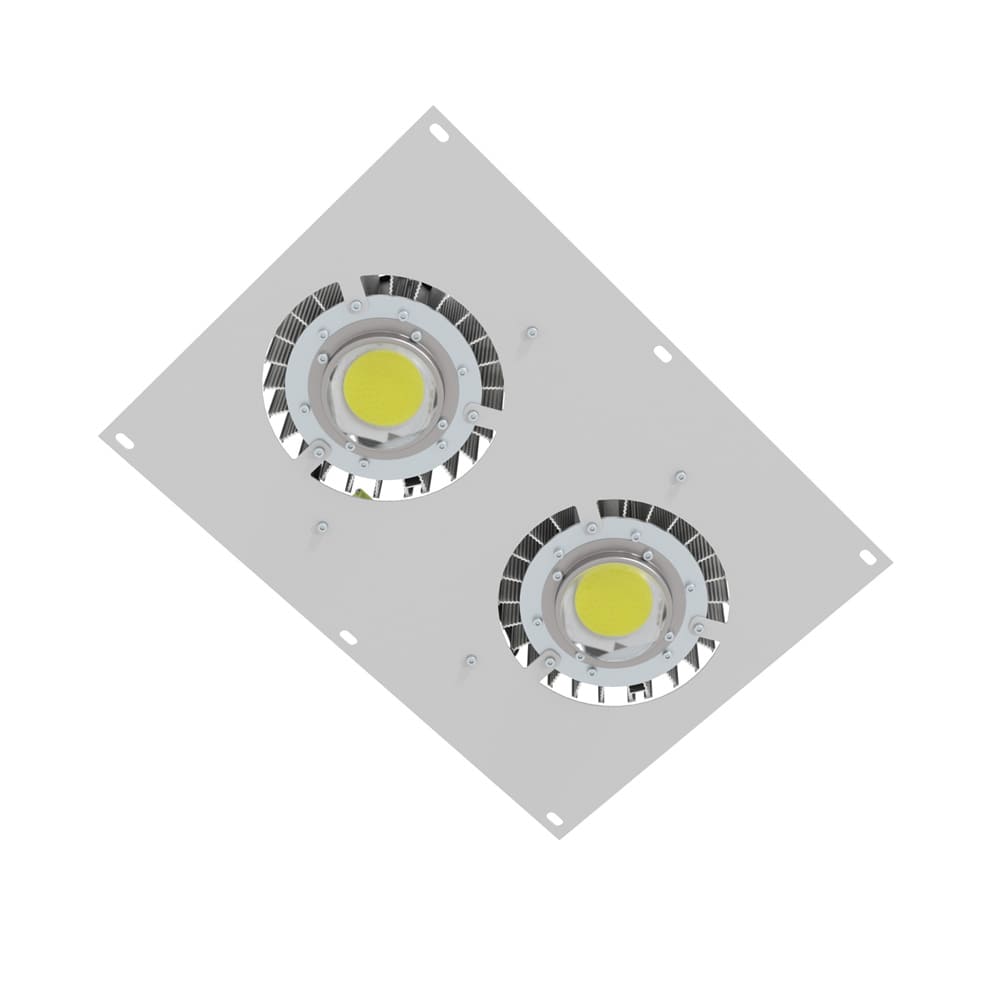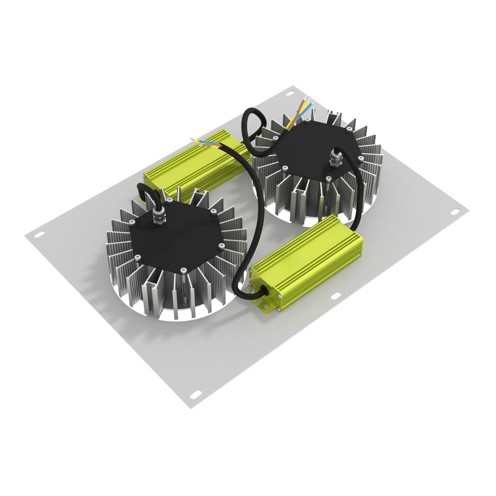 С целью сохранения параметров светильника по высоте источник питания закрепляется на основании из алюминия около основного корпуса.