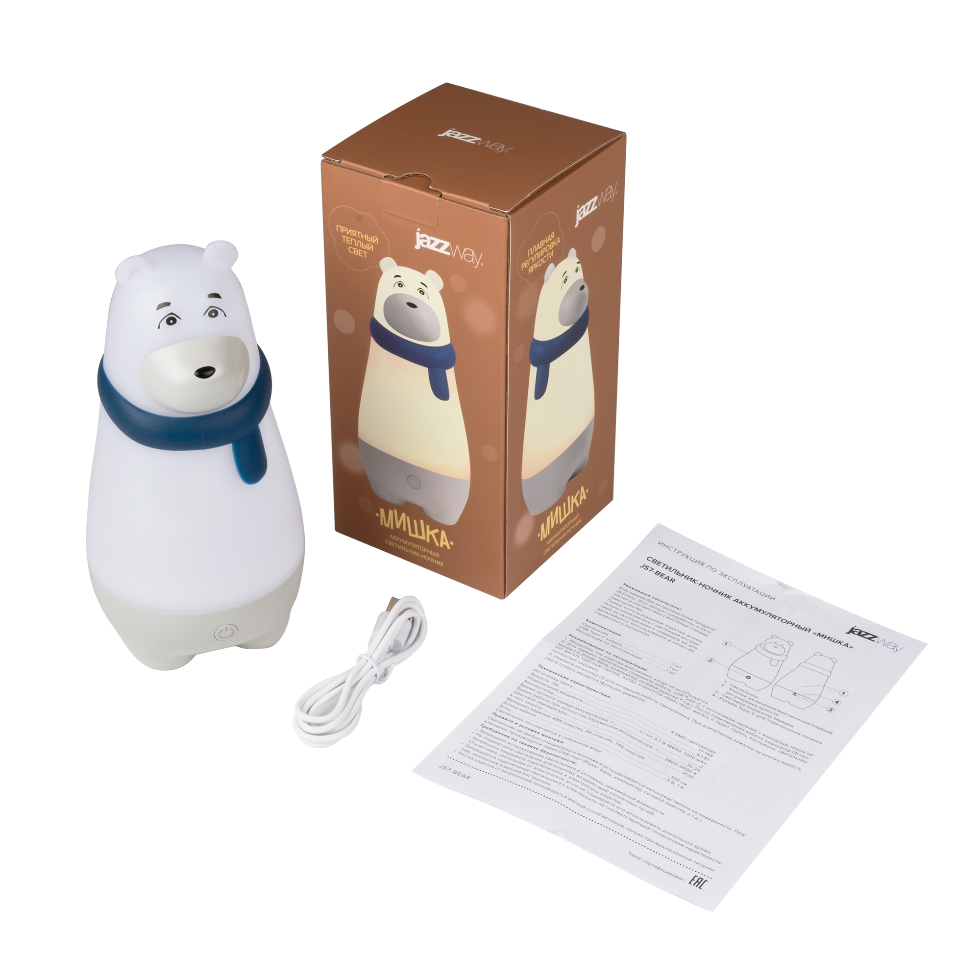 Светильник-ночник JS7-BEAR в форме медведя будет отличным подарком, который порадует и ребёнка, и взрослого. Яркий оригинальный дизайн украсит интерьер детской, спальни или гостиной комнаты. Исходящий теплый приглушенный свет создаст уютную и комфортную обстановку в вашей комнате. Выключатель с диммером позволяет отрегулировать яркость света. Светильник станет отличным компаньоном для ребенка в темноте, поможет засыпать в сказочной обстановке, видеть волшебные и красочные сны.