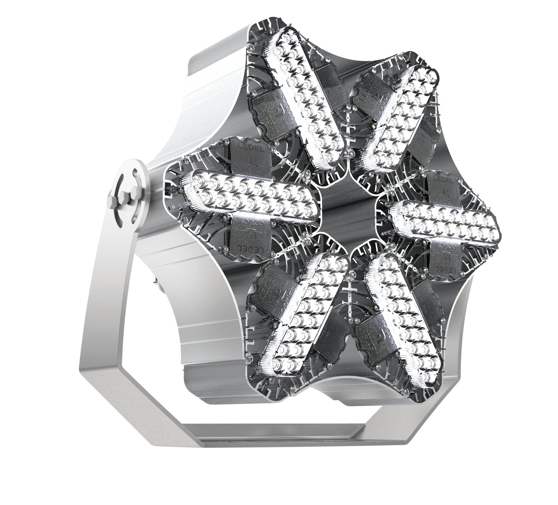 Компактное поворотное (баннерное) крепление для светодиодных прожекторов L-lego II banner состоит из одной детали, что обеспечило дополнительное снижение веса и уменьшение габаритов светильника.
