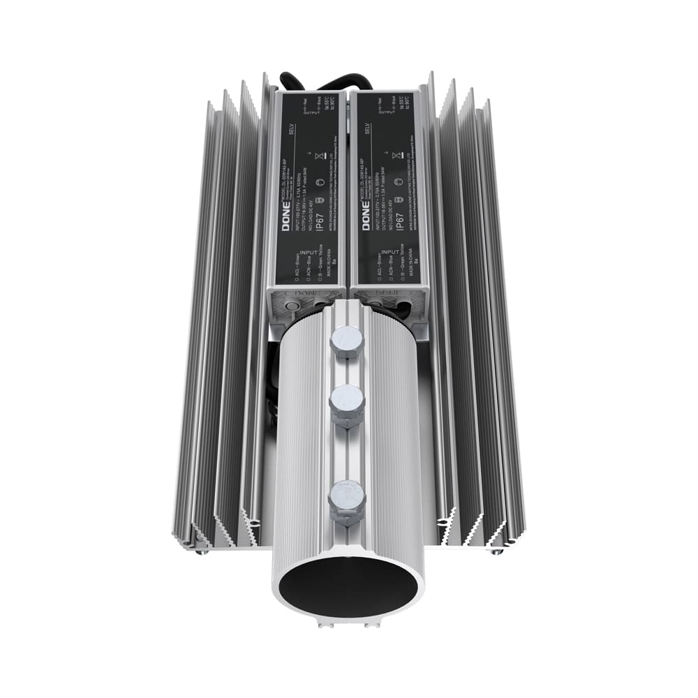 Размещается источник питания или внутри монтажной консоли (в светильниках мощностью менее 60 Вт), или на корпусе (в светильниках мощностью 80 Вт и больше).