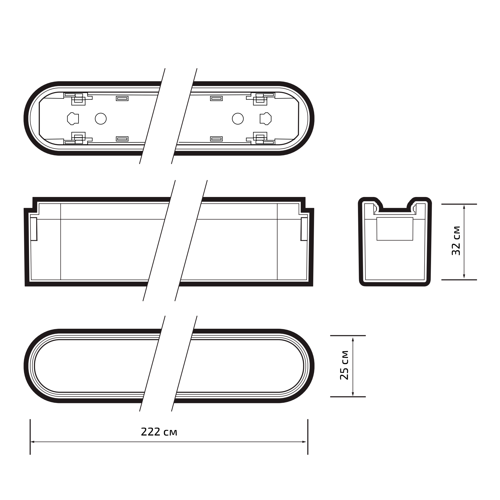 Размеры, мм: 222x25x32
