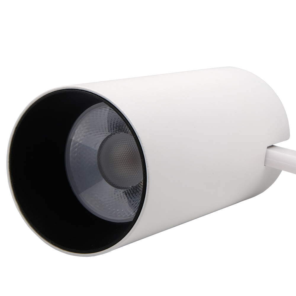 - Конструкция трековой системы обеспечивает перемещение прожекторов вдоль трека, что позволяет изменять направление света и уровень освещенности различных зон.