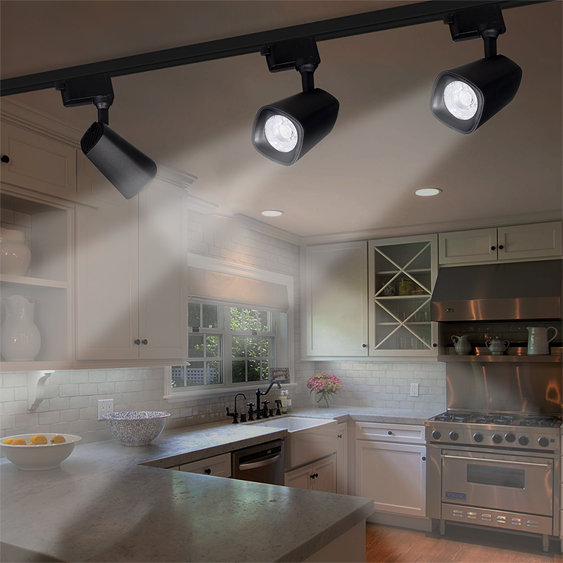 - Конструкция трековой системы обеспечивает перемещение прожекторов вдоль трека, что позволяет изменять направление света и уровень освещенности различных зон.