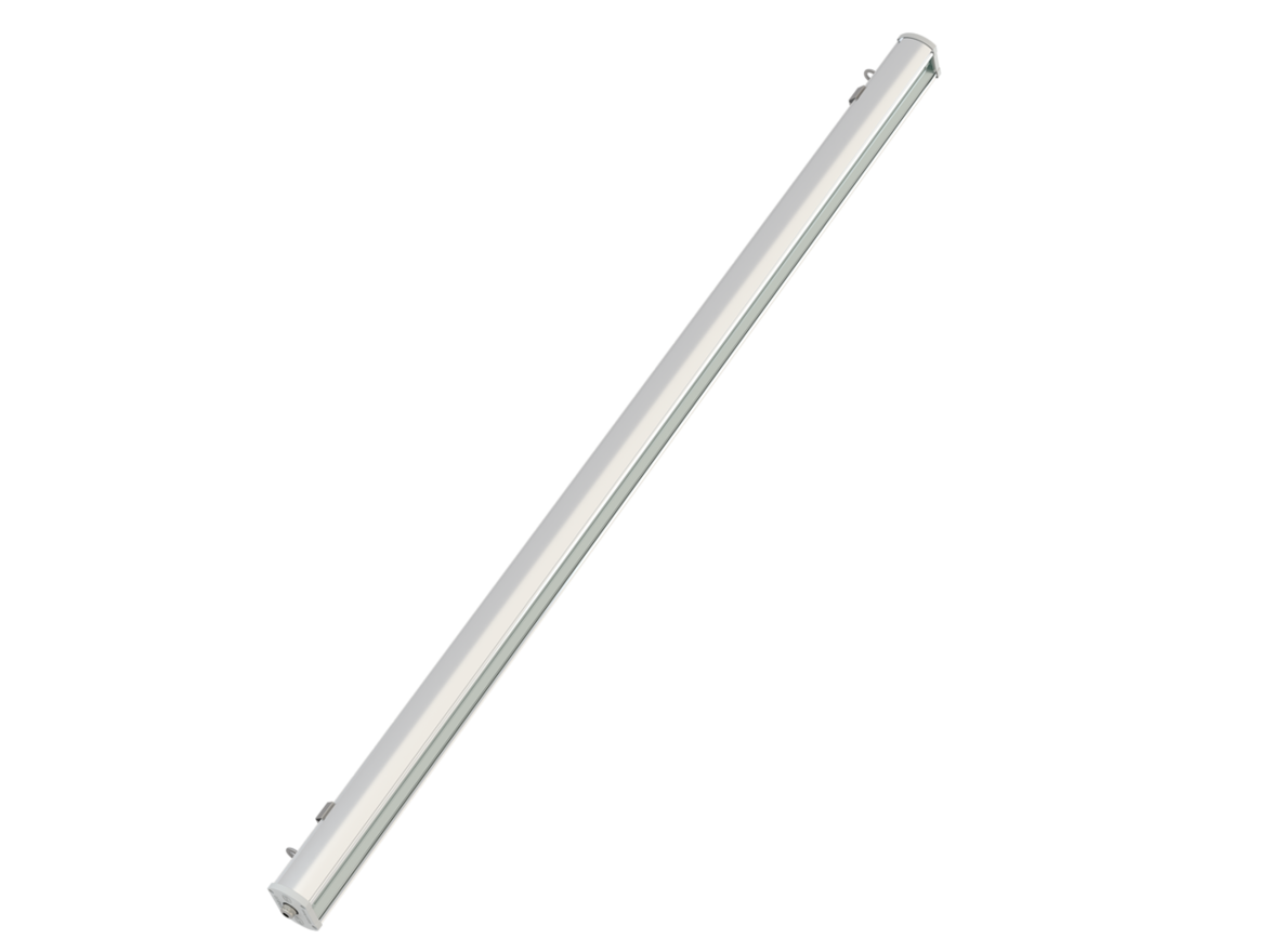 Светильник предназначен для замены люминесцентных светильников типа ЛСП 2х58. Светильник применяется для светодиодного энергосберегающего освещения торговых площадей, общественных зданий, промышленных объектов, складов, коридоров, крытых парковок, автомоек, прачечных. Может устанавливаться на тросовых подвесах, в накладном варианте, а также с поворотным кронштейном. Высота подвеса не более 6 метров обеспечивает высокий уровень освещенности, что сокращает установку светильников типа ЛСП или ЛПО в 3 раза.