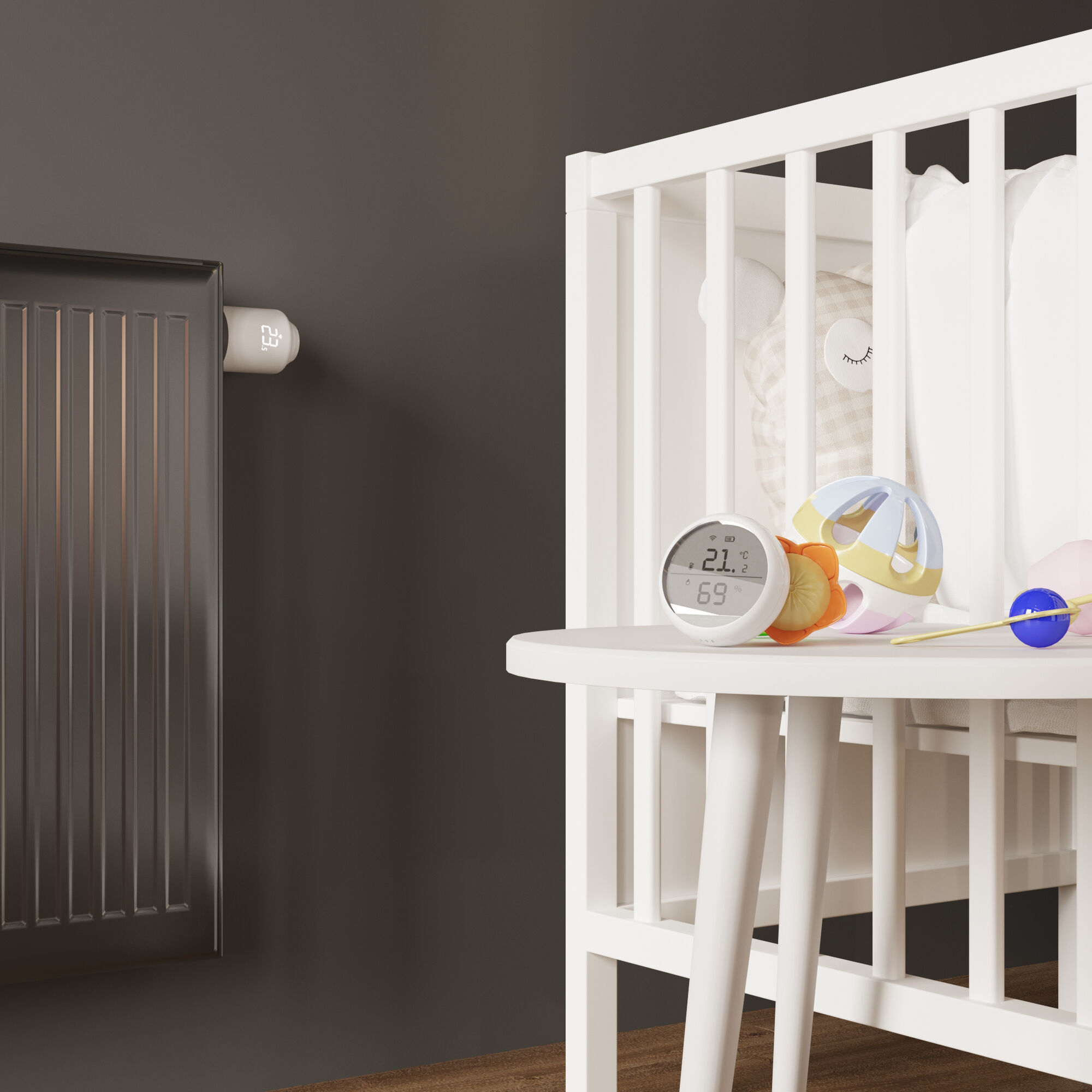 С умным терморегулятором легко настраивать температуру радиатора и водяного теплого пола на любом расстоянии. Управление осуществляется при помощи смартфона или планшета, подключенного к сети интернет. Кроме дистанционного контроля настройки также доступны в ручном режиме.