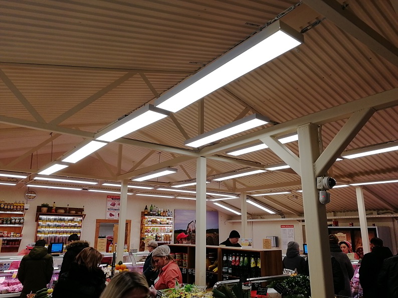 Применены светодиодные светильники ССП-07/53Вт мощностью 53 Вт (https://www.energoresurs-spb.ru/catalog/svetilnik-svetodiodnyy-ssp-07-53-nakladnoy/). Для подсветки баннеров на улице применены светодиодные светильники ДСО 01-45-840-Д120 (https://www.energoresurs-spb.ru/catalog/Svetilnik-svetodiodnyy-DSO-01-45-840-D120/).
