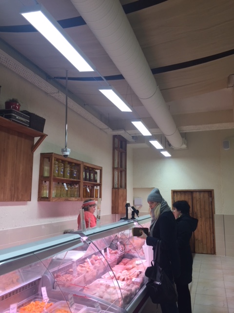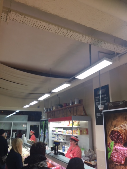 Средняя освещенность в магазине составила 900 Лк, что соответствует современным нормативам по освещенности продуктовых магазинов.